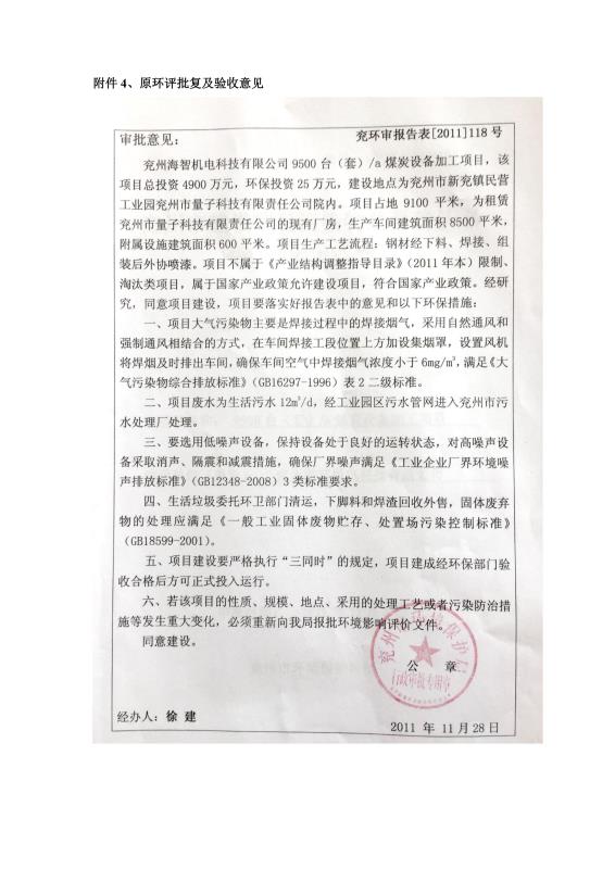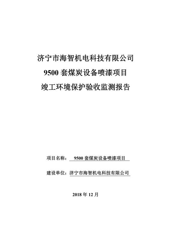 > 9500套煤炭設(shè)備噴漆項(xiàng)目竣工環(huán)境保護(hù)驗(yàn)收監(jiān)測報(bào)告