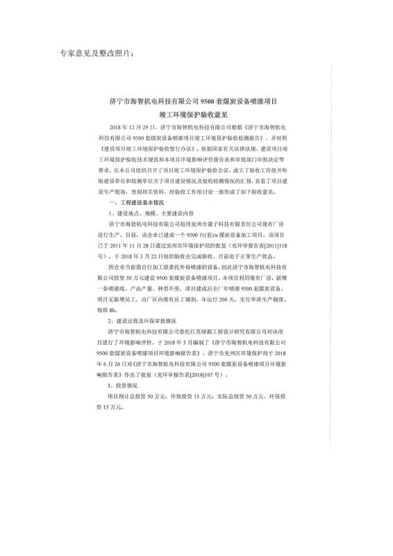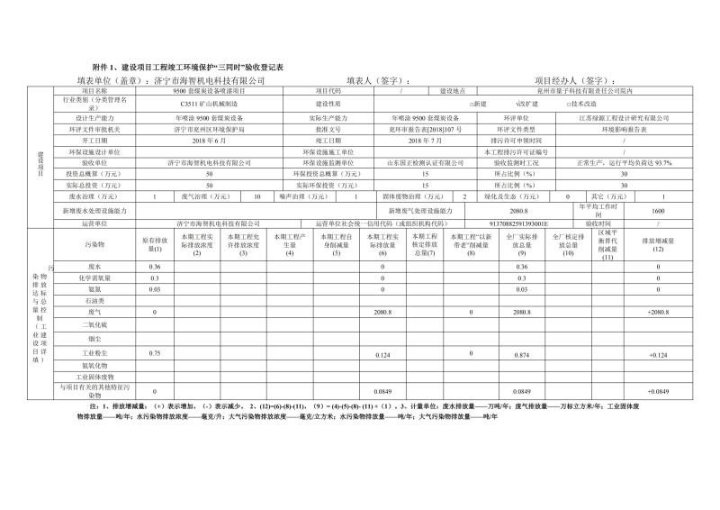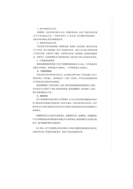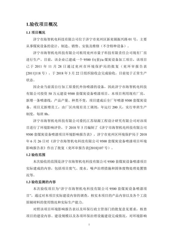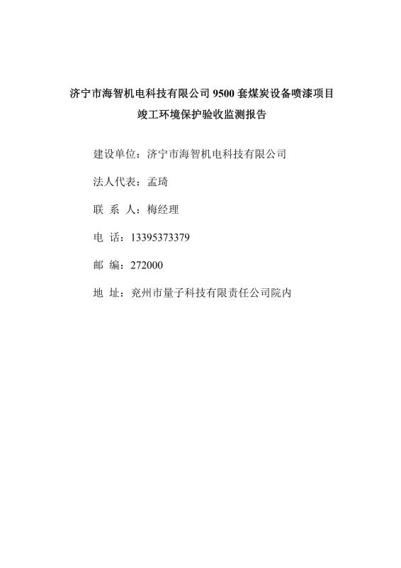 9500套煤炭設(shè)備噴漆項(xiàng)目竣工環(huán)境保護(hù)驗(yàn)收監(jiān)測報(bào)告