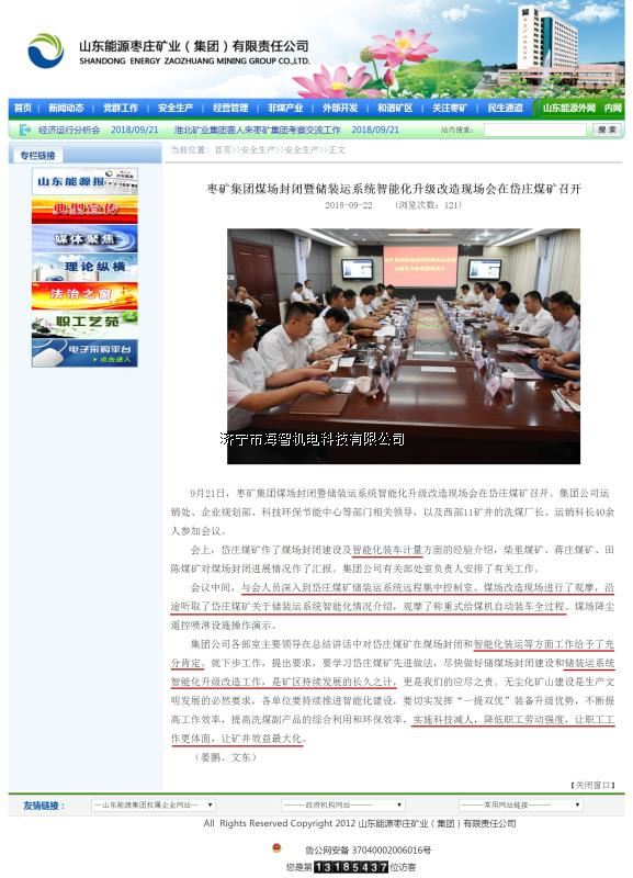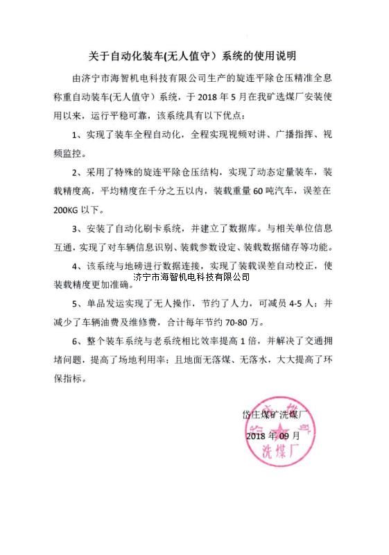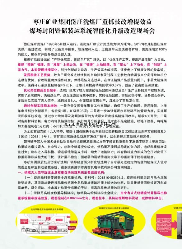 本產(chǎn)品一經(jīng)推出即獲得各大設(shè)計(jì)院及用戶的一致好評(píng),率先在棗礦集團(tuán)岱莊煤礦取得成功應(yīng)用,2018年9月受邀參加了《棗礦集團(tuán)煤場(chǎng)封閉暨儲(chǔ)裝運(yùn)系統(tǒng)智能化升級(jí)改造現(xiàn)場(chǎng)會(huì)》,智能裝車(chē)系統(tǒng)得到了充分肯定!我司憑借雄厚的加工制造實(shí)力及過(guò)硬的創(chuàng)新技術(shù)能力,勢(shì)必為運(yùn)輸稱重系統(tǒng)、快速計(jì)量裝車(chē)系統(tǒng)帶來(lái)又一次的技術(shù)創(chuàng)新變革。
