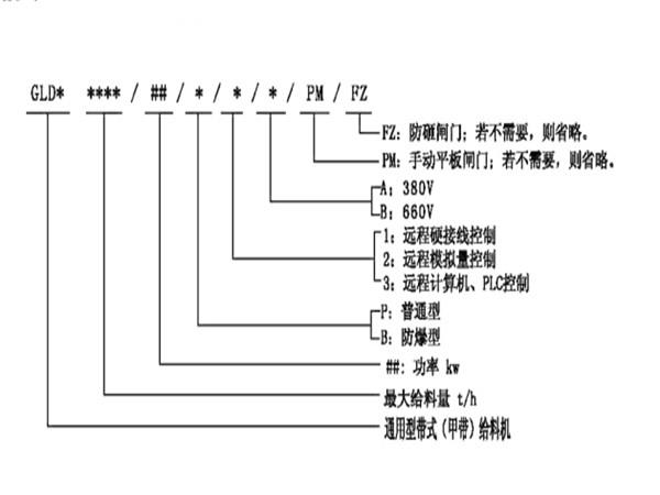 變頻調(diào)速給料機(jī)型號(hào)說明: