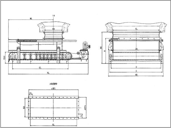 加寬加長(zhǎng)帶式(甲帶)給料機(jī)的外形及連接尺寸: