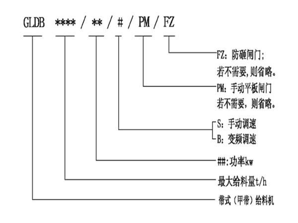 帶式(甲帶)給料機(jī)型號說明: