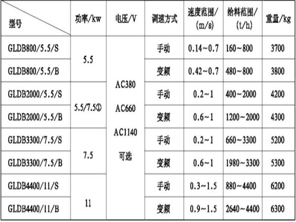 帶式(甲帶)給料機(jī)技術(shù)參數(shù):